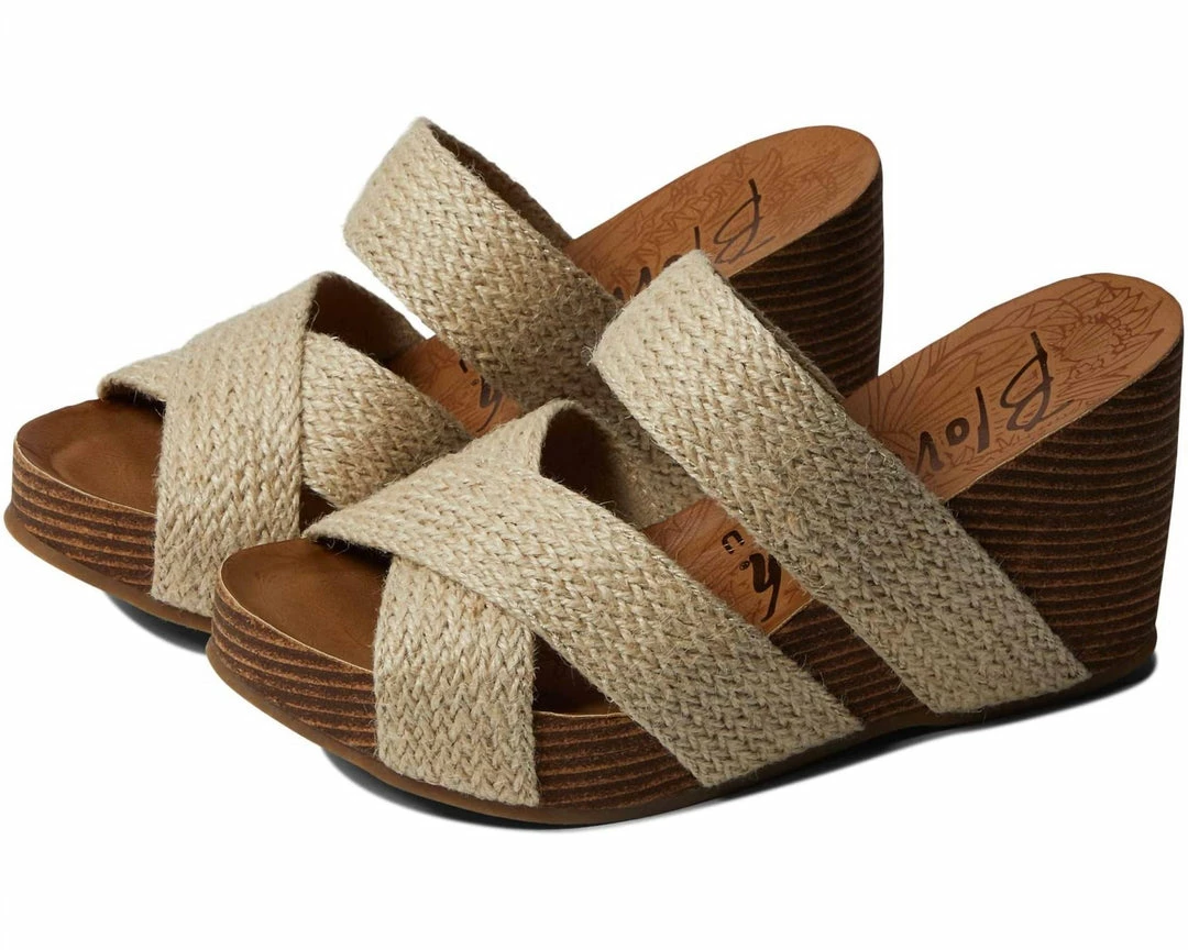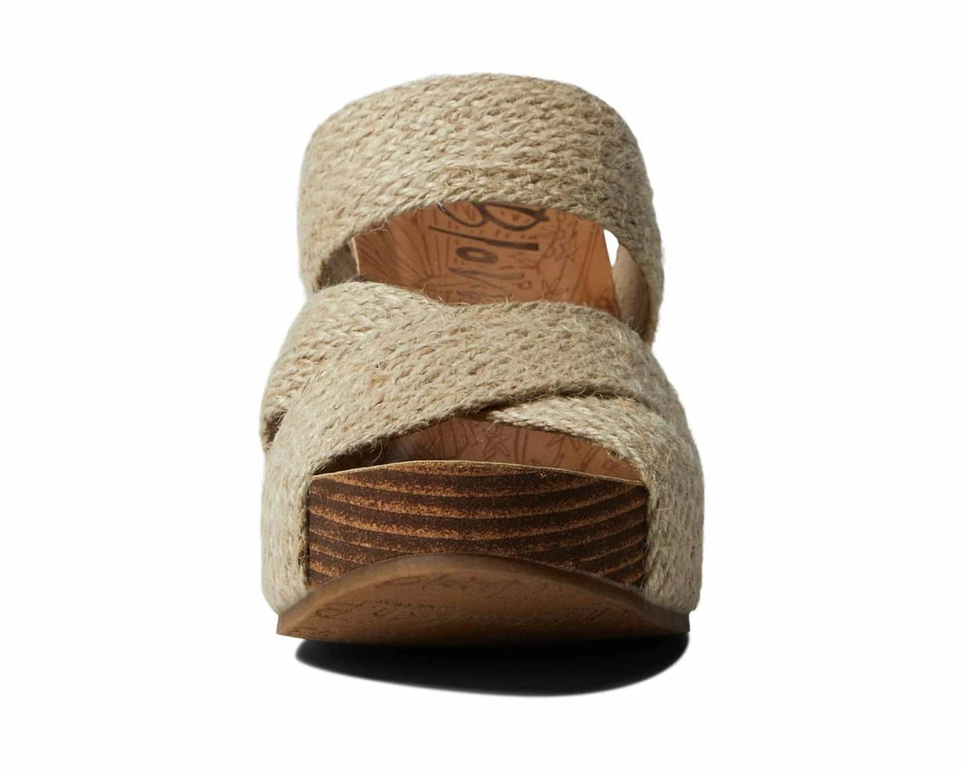 Textile upper.Synthetic lining.Cushioned footbed offers enhanced comfort.Slide-on style.Open round toe.High wedge heel.Braided jute vamp strap.Branding detail on the footbed.Textile and synthetic outsole.Imported.Measurements – Heel Height – 4 in