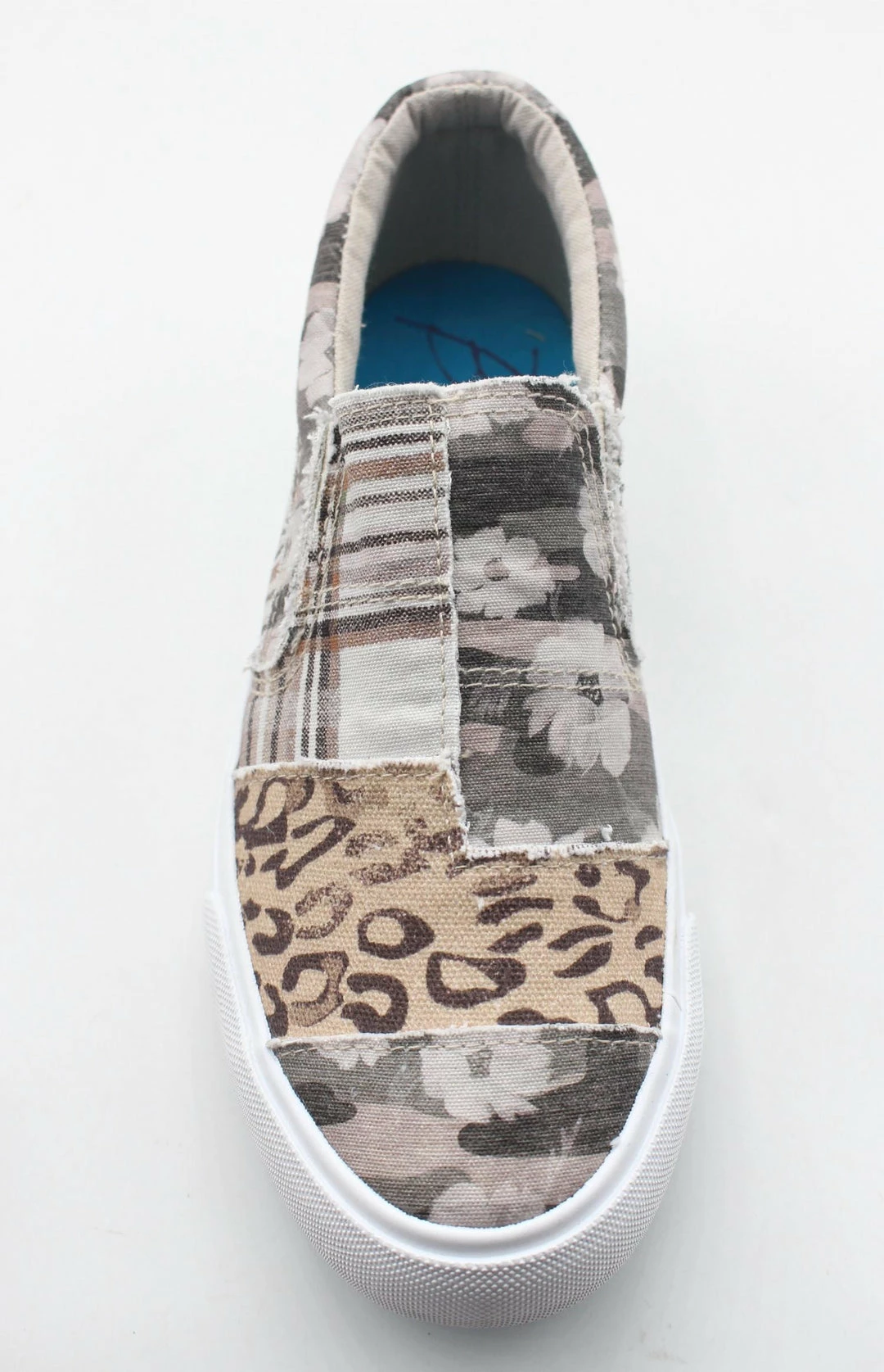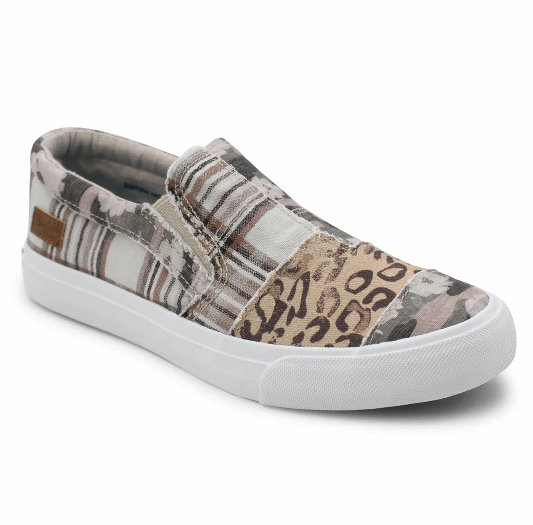 Slip-on sneaker features a multi-patterned upper and has an unlaced look to keep these on and take these off easily. The cushioned footbed allows for all day comfort.