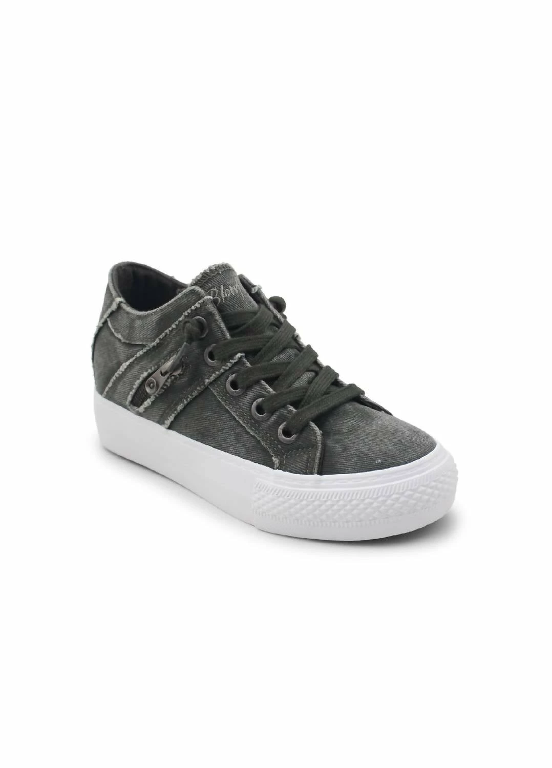 a slip on sneak with a hidden wedge. Comfortable and lightweight. Features include a distressed canvas upper, embroidery detailing, a cushioned insole and branded hardware.
