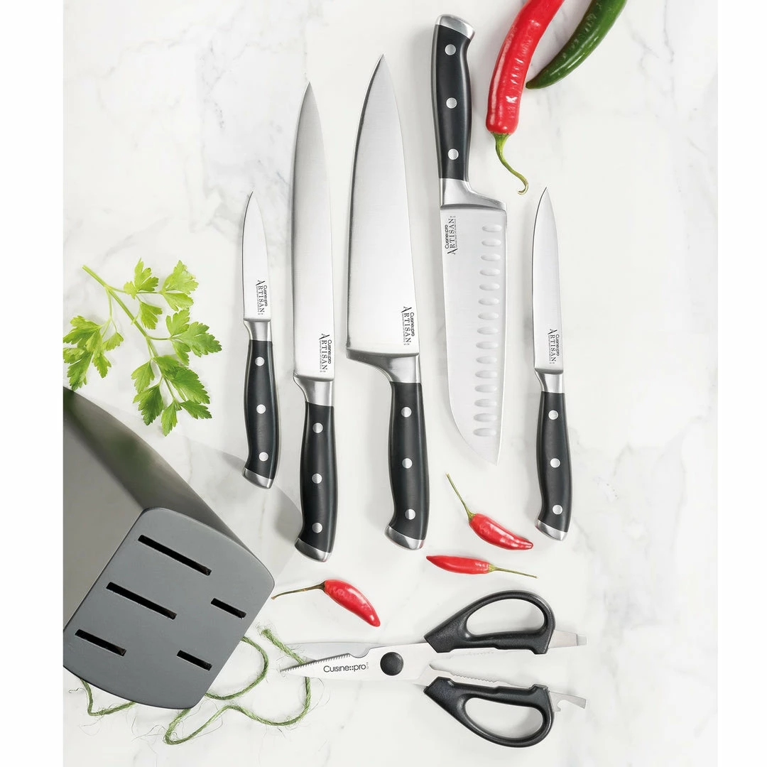ARTISAN™ brings precision and blade-smith perfection to Cuisine – – pro® by THE CUSTOM CHEF™, so now the choice of the great Master Chefs can be yours at home. The Cuisine – – pro® ARTISAN™ knives collection combines all the superb technical characteristics favored by chefs all around the world.