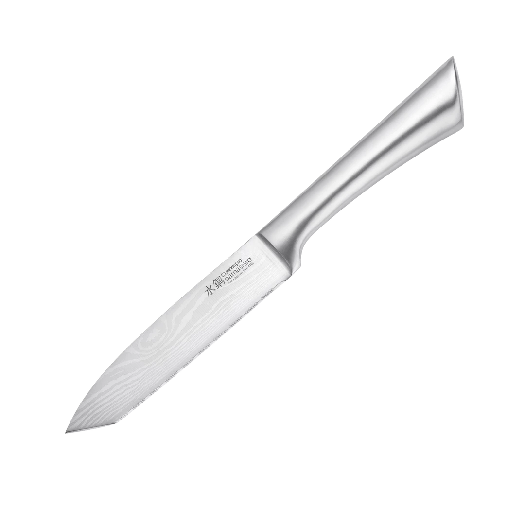 The Cuisine – – pro® Damashiro® All Purpose ‘Try Me’ Knife 14.5cm/5.5″ has an angled tip that is perfect for detailed or delicate cutting and piercing.
