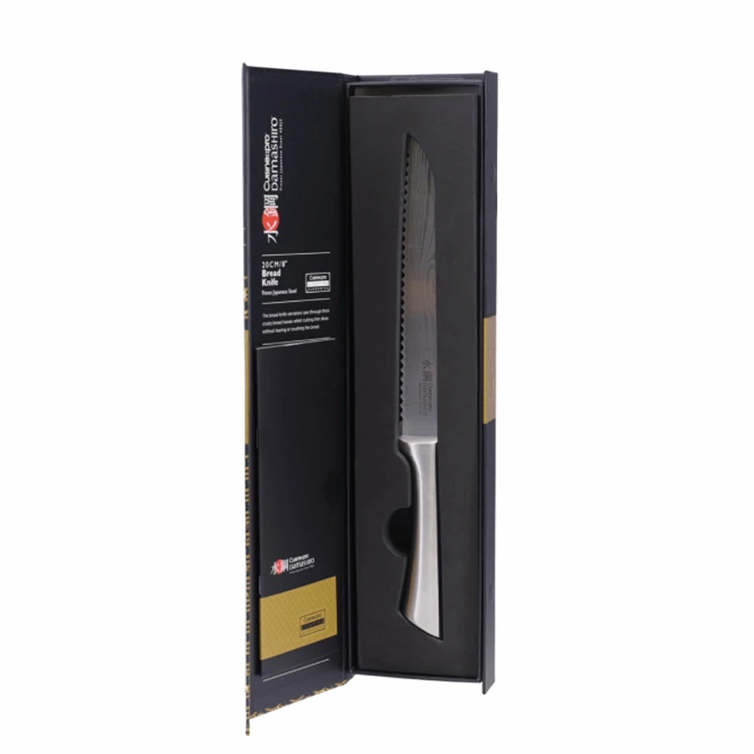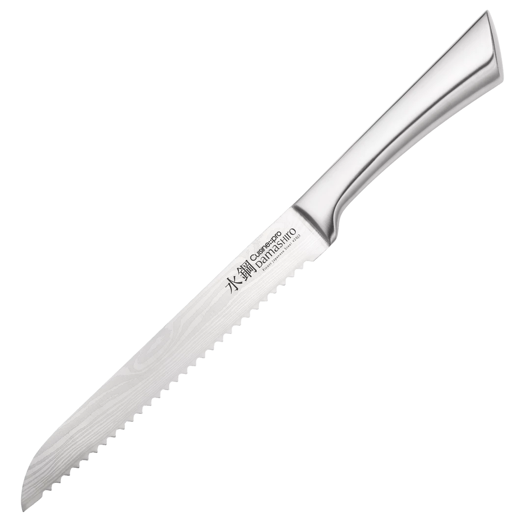 The Cuisine – – pro® Damashiro® Bread Knife allows you to cut thick crusted breads without crushing or tearing their soft centers. The knives measured serrations help cutting through foods with tough exteriors.