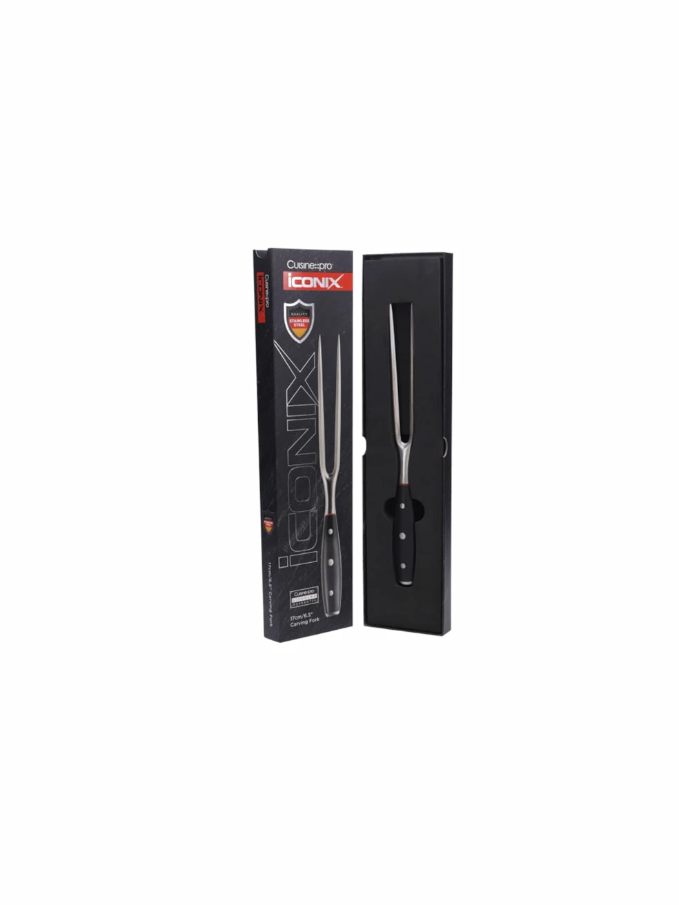 The iconiX® carving fork is the perfect companion to a carving knife and will hold the material being cut in the correct position.