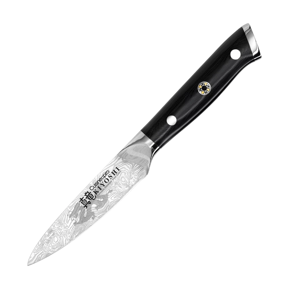 The Cuisine – – pro® KIYOSHI™ Paring knife is our smallest kitchen knife. It has a razor sharp blade that is ideal for everyday culinary tasks of peeling and slicing fresh produce, or intricate work like deveining a shrimp, skinning mushrooms or cutting small garnishes.