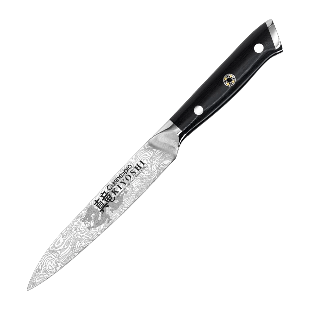 The Cuisine – – pro® KIYOSHI™ Utility knife is a medium-sized all purpose knife. Ideal for every-day essential kitchen functions such as cutting cheese, chopping fruit and vegetables, and slicing fish.