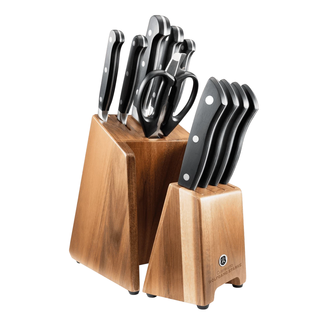 WOLFGANG STARKE™ by THE CUSTOM CHEF™ brings German precision and blade-smith perfection to Cuisine – – pro®. The choice of the great European Master Chef’s can be yours at home too. Celebrated for perfection in manufacturing and cutting performance, the WOLFGANG STARKE™ range is constructed from high-quality German stainless steel, and produced with a controlled tempered process to ensure the best possible hardness, toughness and flexibility.