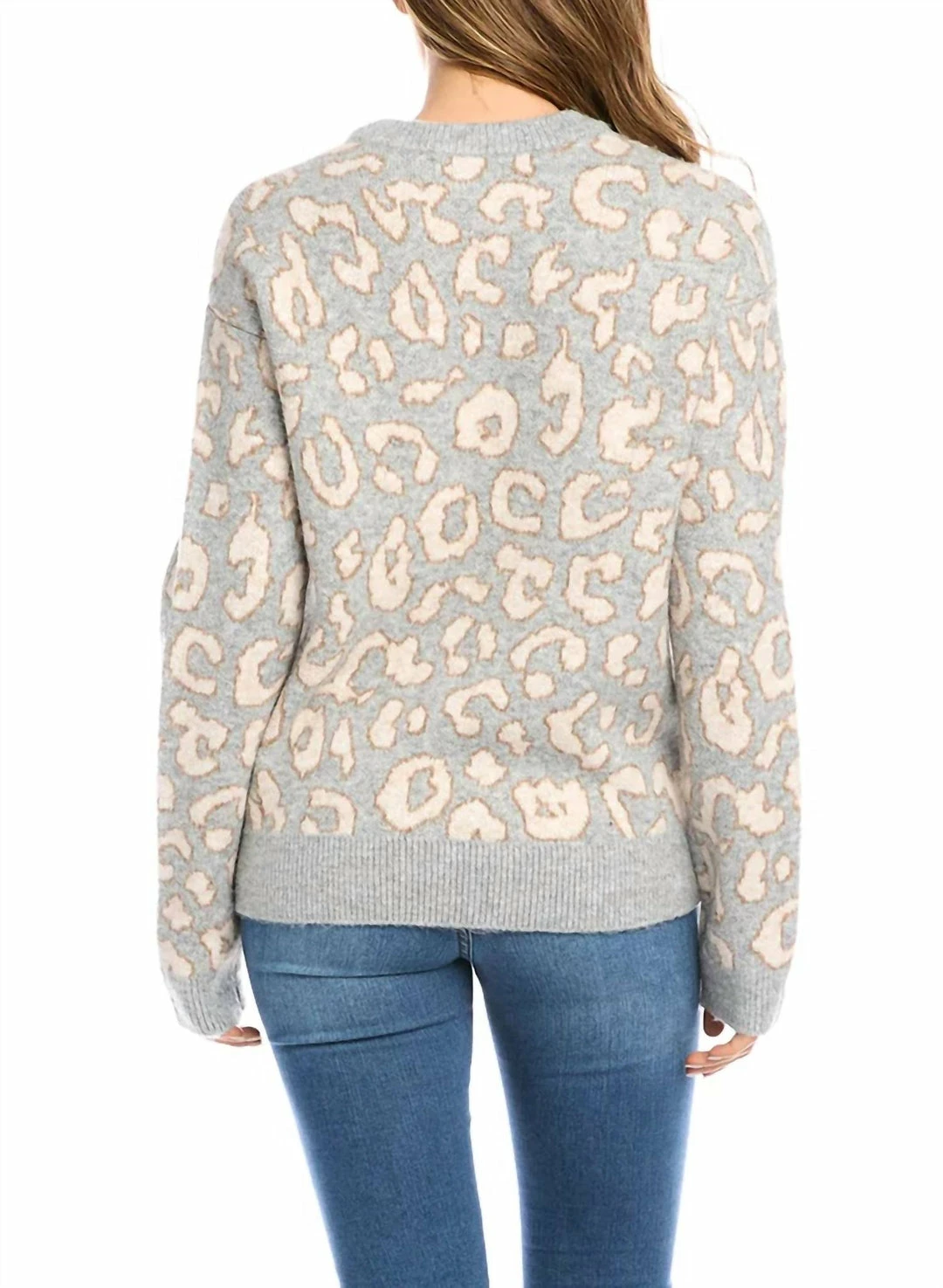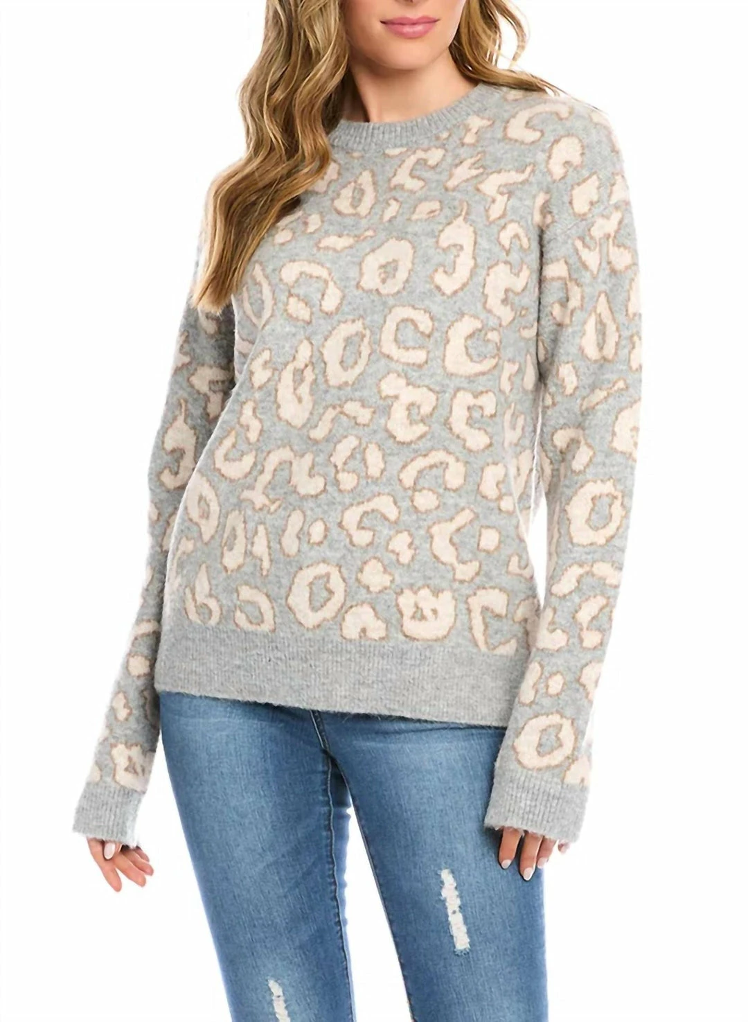 Long sleeve. Length – 24 1/4 inches (size M). Crew neck. Animal print