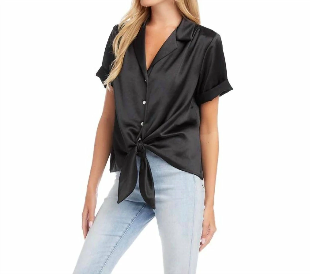 Karen Kane women Roll Sleeve Tie Top in Black